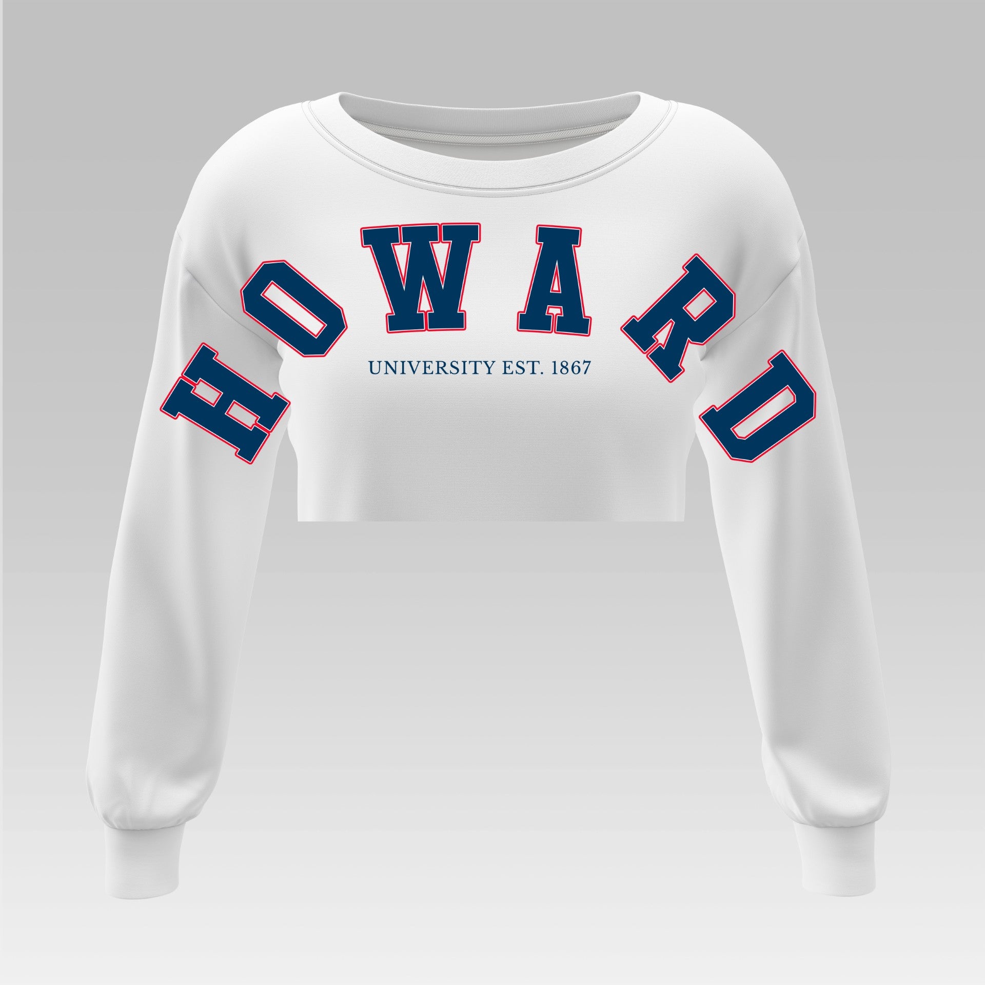 Calling all HOWARD UNI BADDIES! This unisex fit white Howard University long sleeve crop top sweatshirt is the perfect addition to your wardrobe. Stay warm and stylish while showing off your school pride. Made from high quality material, you'll rock this sweatshirt all year long.